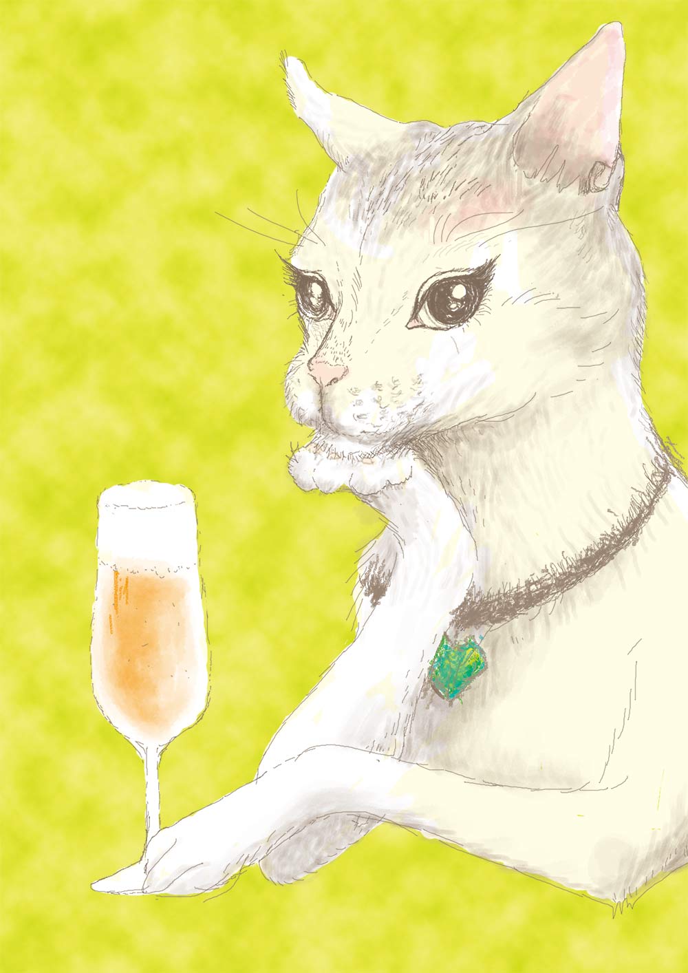 【はぴもりのイラスト001】「スナックの白猫ママ」